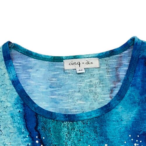 カットソー アシンメトリー ラインストーン シフォン 転写プリント 切替 半袖 1775 03