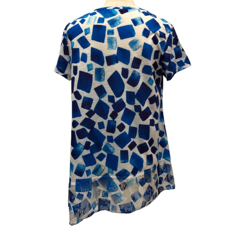 カットソー アシンメトリー ラインストーン シフォン 転写プリント 切替 半袖 1777 03