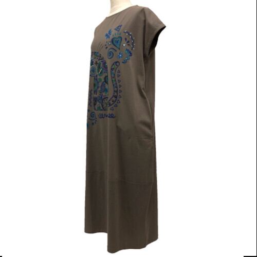 チュニック ワンピース ラインストーン アニマルプリント 猫 切替 半袖 SS56 16