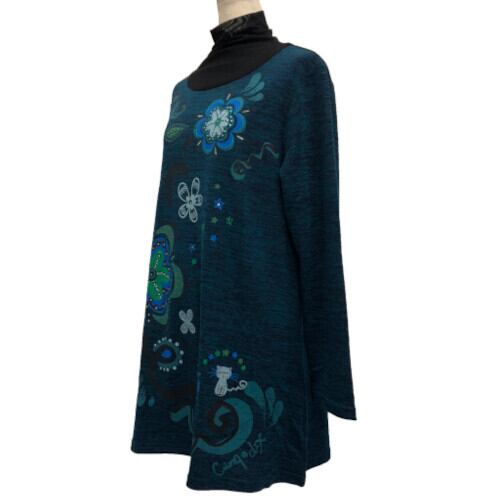 チュニック Aライン ラインストーン アニマルプリント ネコ ハイネック シフォン 長袖 60-AW40 08 【cinq dix】 | ミセスファッション 婦人服通販 カットソー・チュニックならサンクプラス - cinqplus -