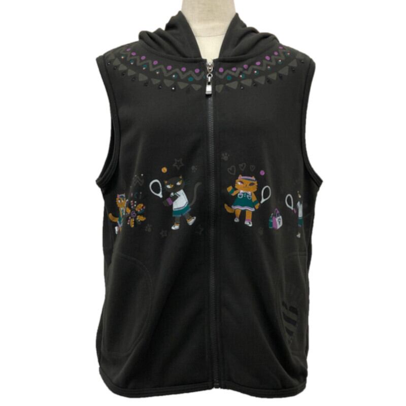ベスト パーカー ジップアップ アニマルプリント ネコ柄 ポケット付き 50-VE09 19 【cinq dix】 | ミセスファッション 婦人服通販 カットソー・チュニックならサンクプラス - cinqplus -