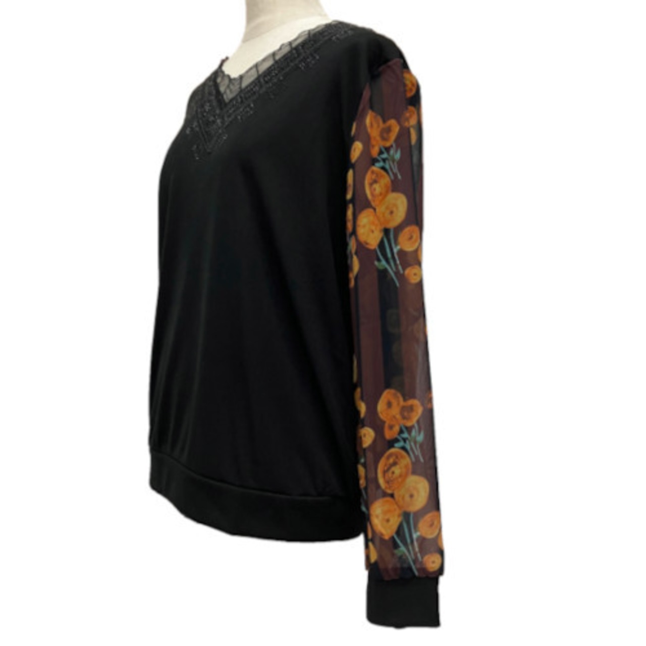 パワーネット カットソー ラインストーン シアー スリーブ 長袖 70-N088 5A 【cinq dix】