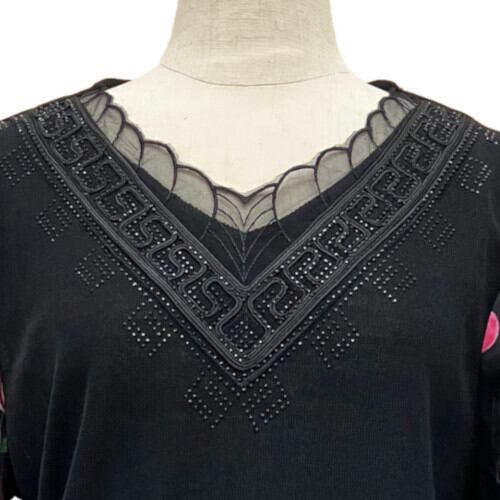 パワーネット カットソー ラインストーン シアー スリーブ 長袖 70-N088 12 【cinq dix】 | ミセスファッション 婦人服通販 カットソー・チュニックならサンクプラス - cinqplus -