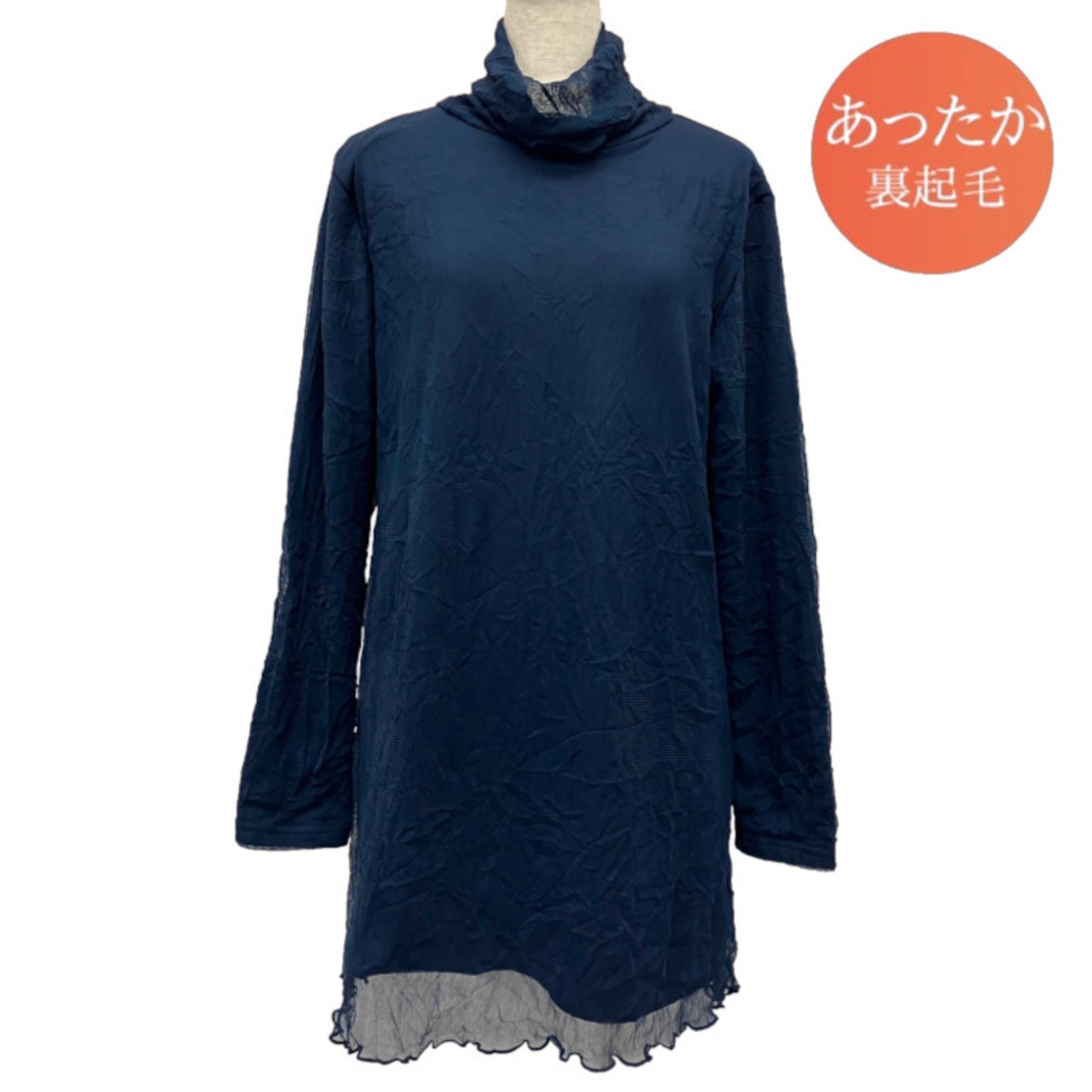 パワーネット カットソー 裏起毛 フリース タートルネック 丈長 Aライン 裾フリル 長袖 4903 04 【cinq dix】
