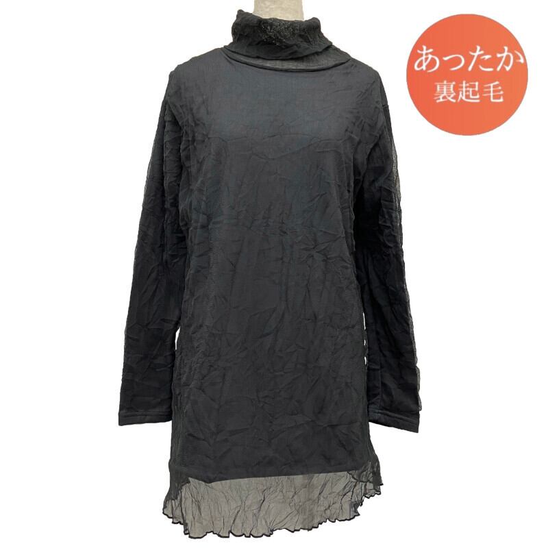 パワーネット カットソー 裏起毛 フリース タートルネック 丈長 Aライン 裾フリル 長袖 4903 18 【cinq dix】