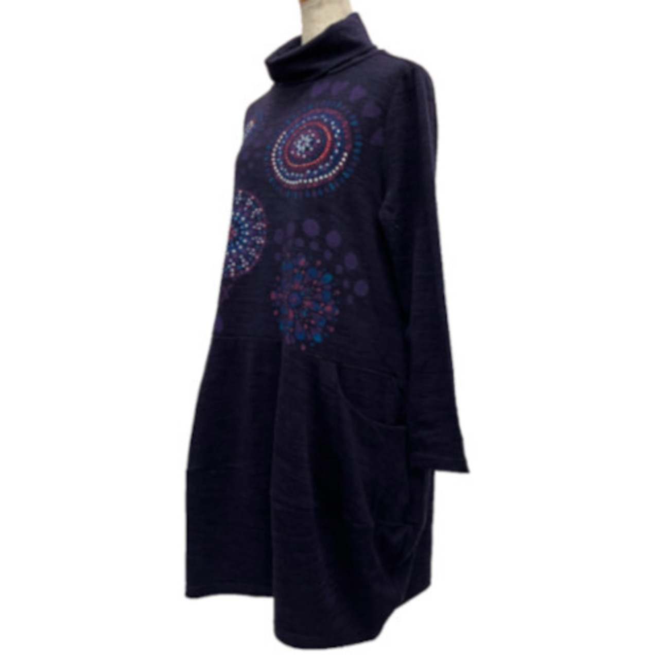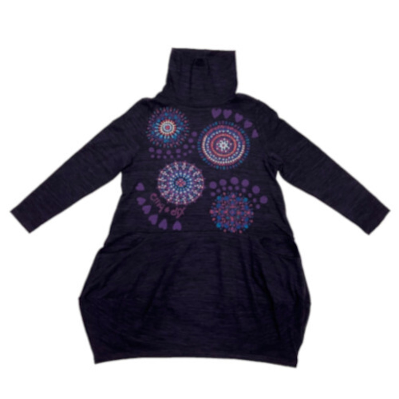 チュニック ワンピース バルーン タートルネック ラインストーン 長袖 70-AW43 03 【cinq dix】