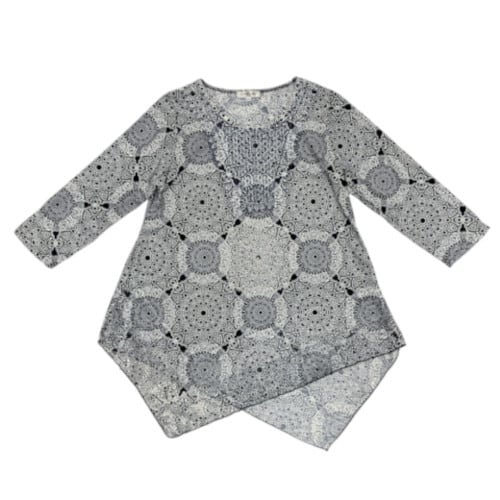カットソー アシンメトリー ラインストーン レース 転写プリント 七分袖 83-1782 18