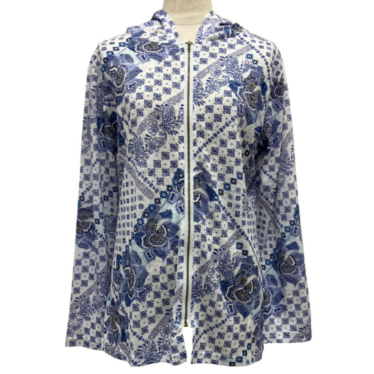 パーカー ラインストーン ジップアップ 転写プリント 長袖 83-4255 04