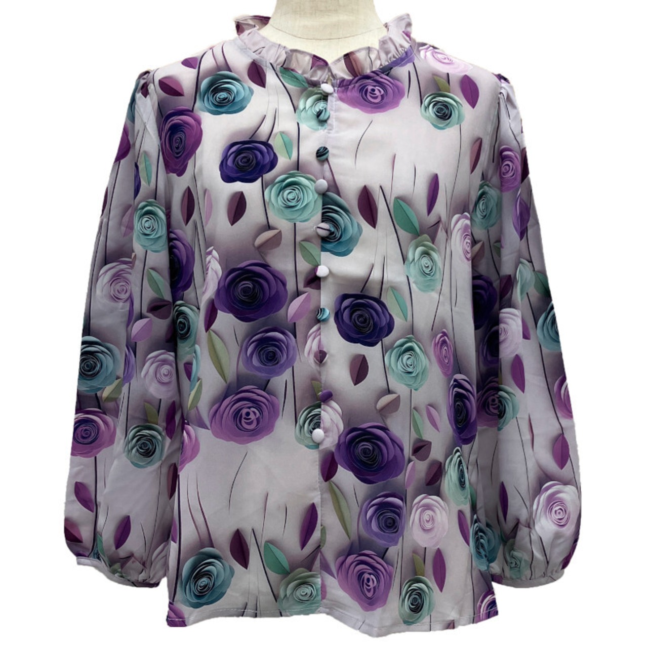 プルオーバー ブラウス フリルネック 花柄 長袖 83-N102 14