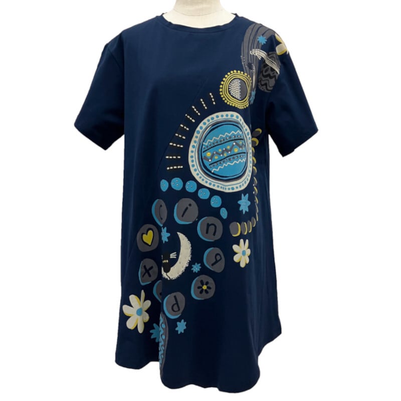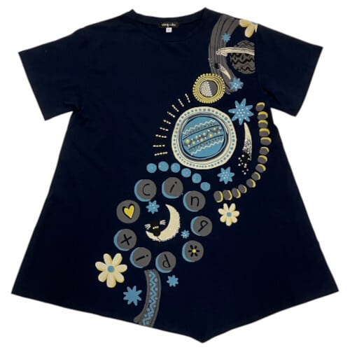 チュニック Aライン 切替 アニマルプリント ネコ ラインストーン 半袖 83-SS59 04