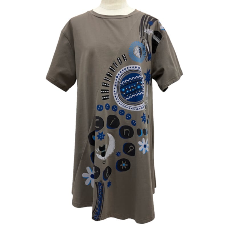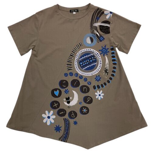 チュニック Aライン 切替 アニマルプリント ネコ ラインストーン 半袖 83-SS59 16
