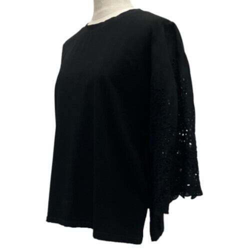 カットソー レース スリーブ 花柄 サイドスリット 長袖 83-N100-20