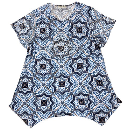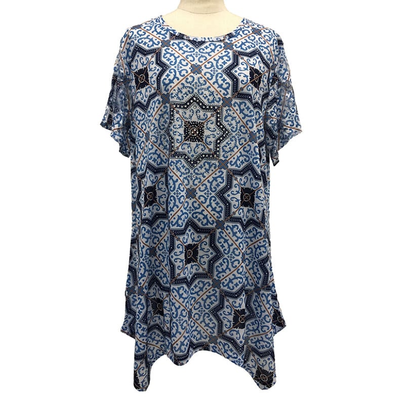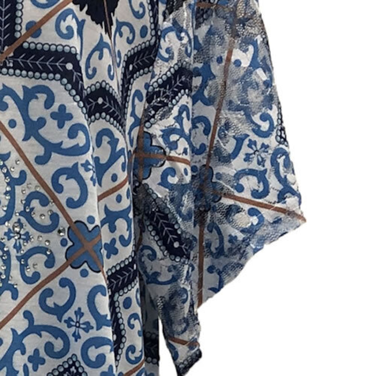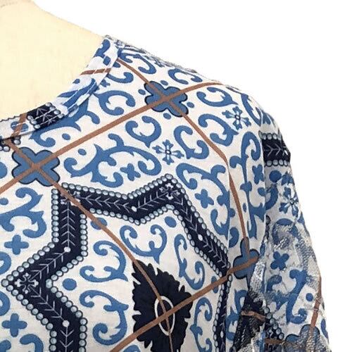カットソー アシンメトリー ラインストーン レース 転写プリント 半袖 1740 03